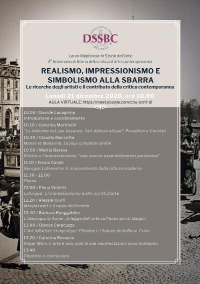 Nell'ambito dell’attività didattica del corso di laurea magistrale in Storia dell'arte gli studenti dell'insegnamento di Storia della critica d'arte contemporanea propongono alcune riflessioni sulla critica militante in Francia nella seconda metà dell'Ottocento, con particolare riguardo alle ricerche degli artisti in ambito realista, impressionista e simbolista.