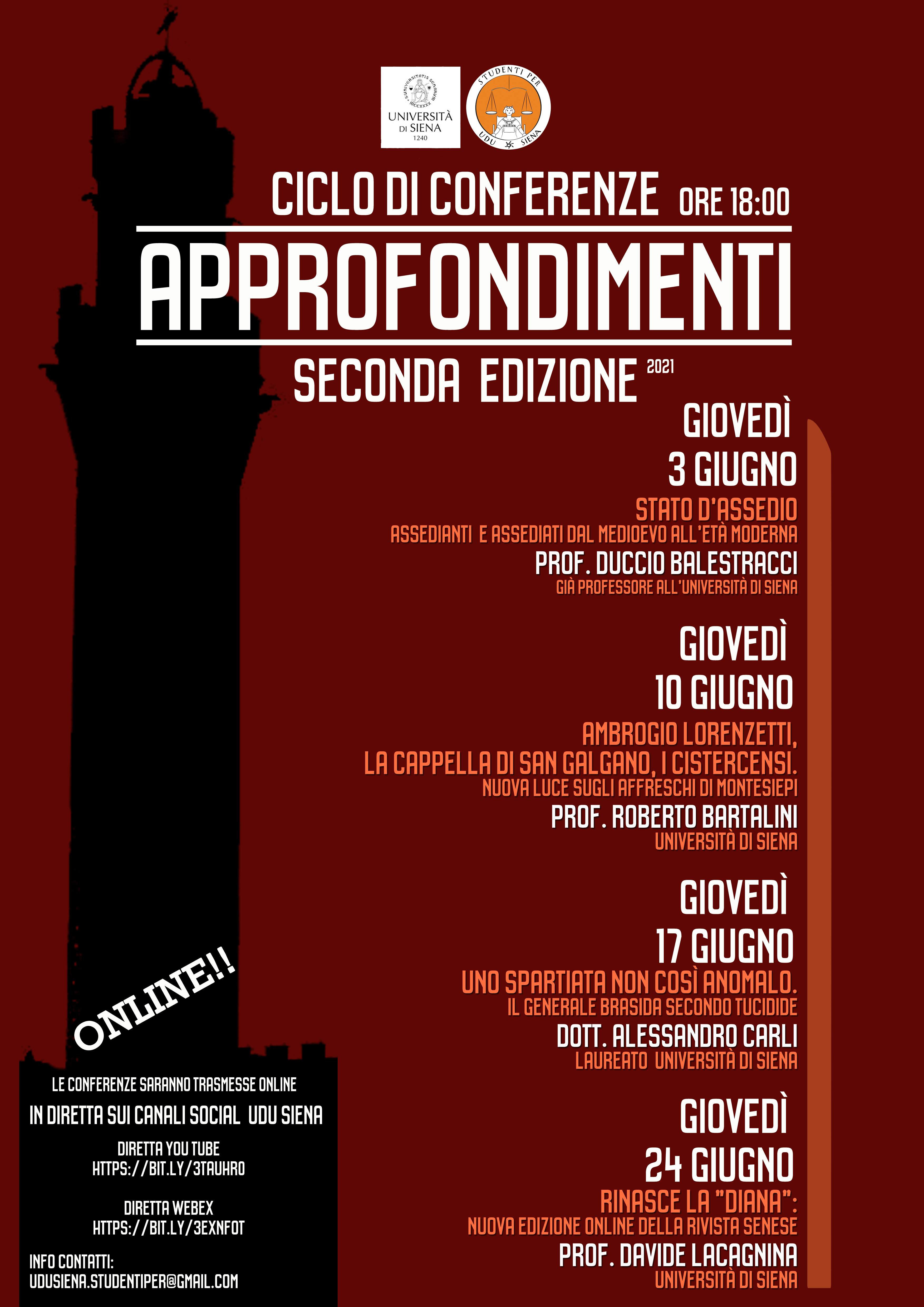 - YOUTUBE sul nostro canale UDU SIENA al link: https://bit.ly/3tAuhr0
