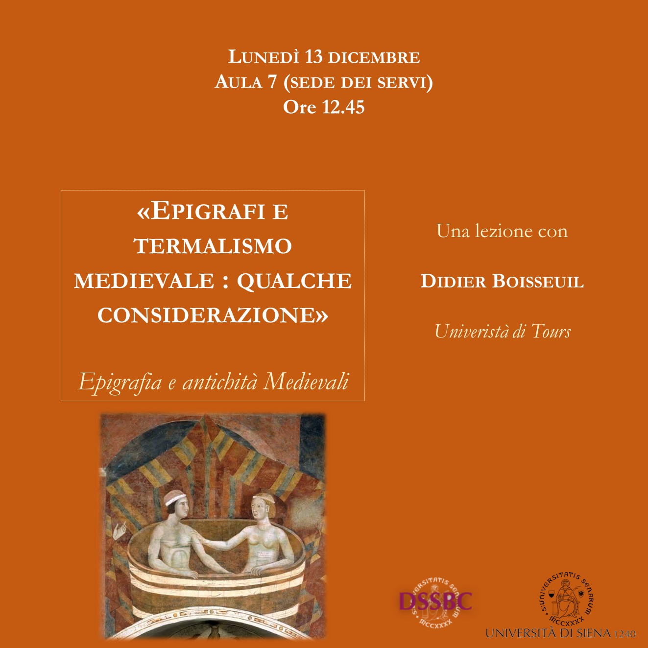 “Epigrafi e termalismo medievale: qualche considerazione” – lunedì 13 ore 12.45 Aula 7 – Palazzo Funaioli Mazzi