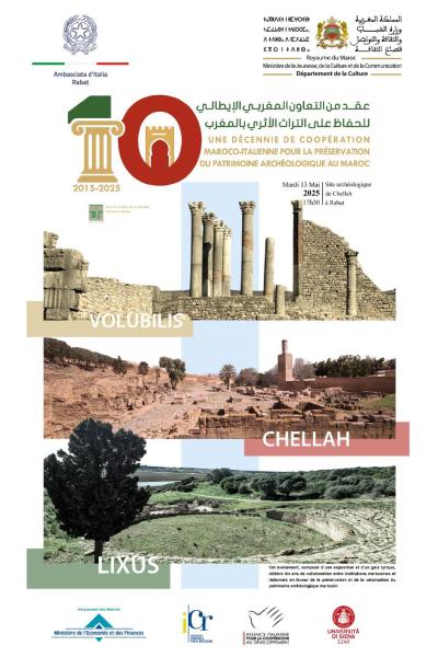 Il decimo anniversario della cooperazione Italo-Marocchina per la protezione e la valorizzazione del patrimonio culturale sarà celebrato martedì 13 maggio presso il sito archeologico di Chellah, patrimonio dell’Unesco, a pochi chilometri dal centro città.