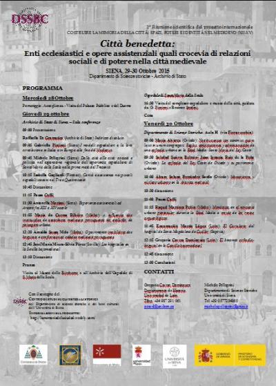 09:45 Michele Pellegrini (Siena): Dalla città alle città: società e politica nell’espansione regionale dell’esperienza ospedaliera di Santa Maria della Scala nella prima metà del Trecento.