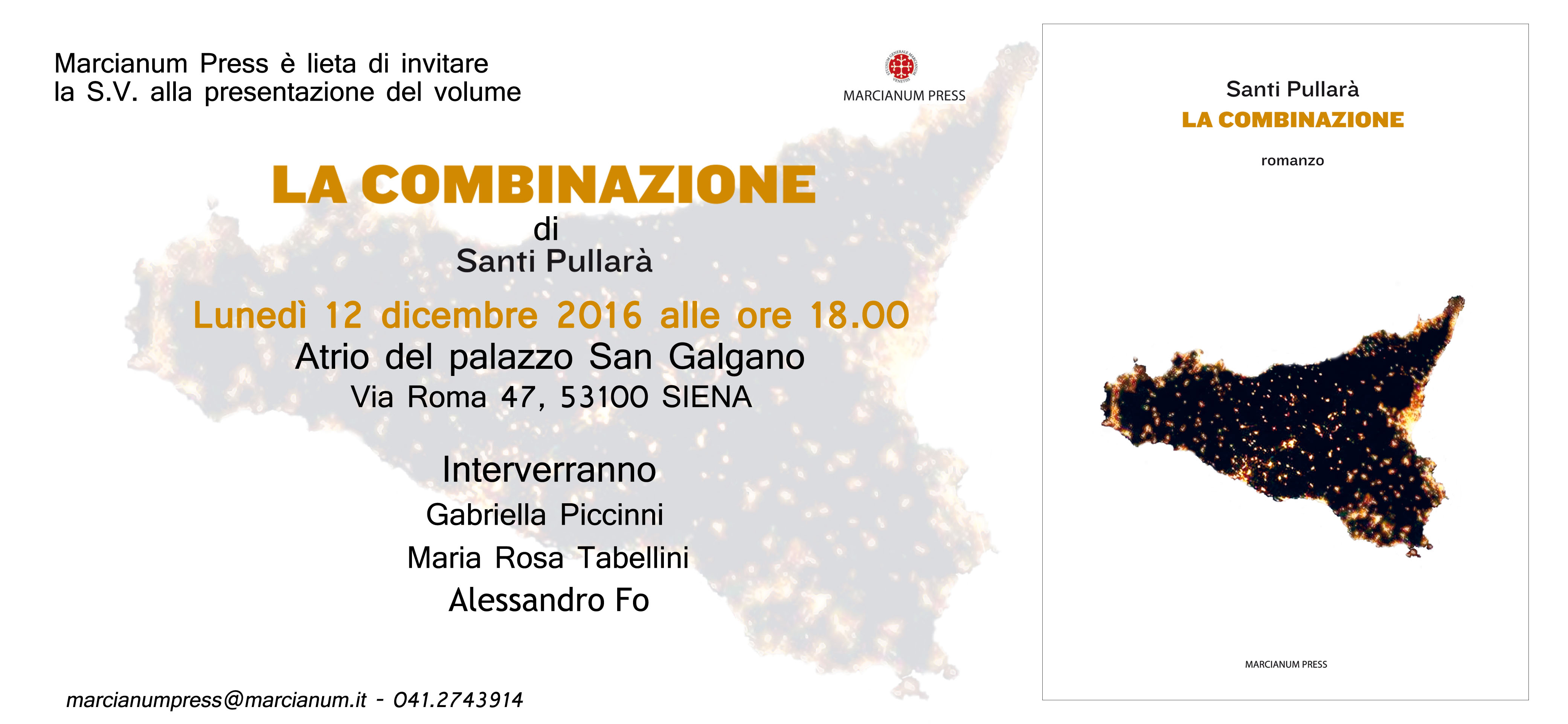 la presentazione del Romanzo di Santi Pullarà La Combinazione, edito da Marcianum Press (2016)