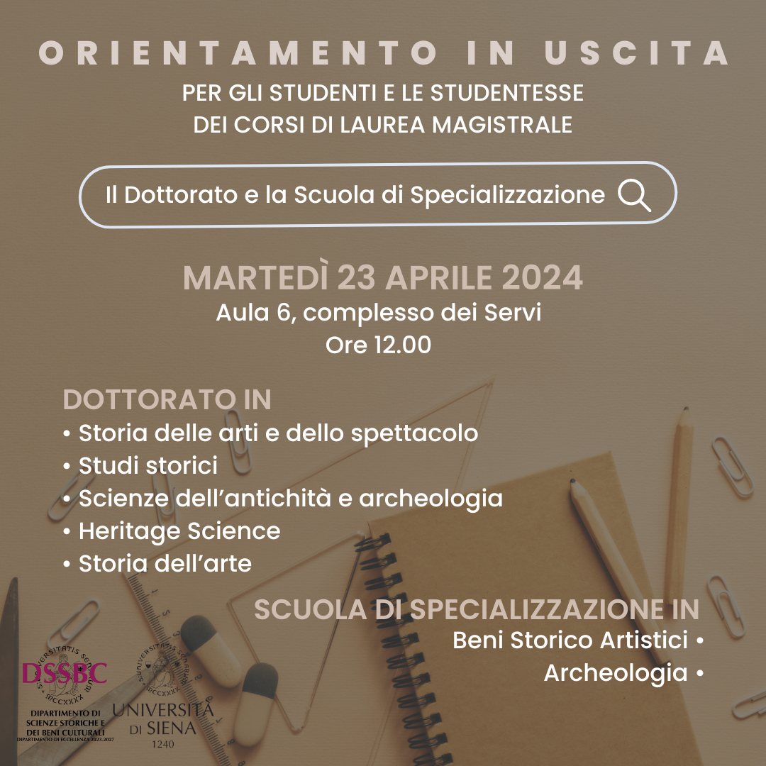 Il 23 aprile, a partire dalle ore 12.00, si terrà un appuntamento dedicato alla presentazione dei percorsi di Dottorato e Scuola di Specializzazione.