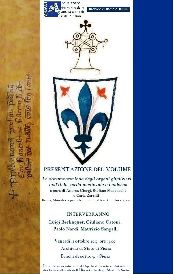 Presentazione del volume. La documentazione degli organi giudiziari nell'Italia tardo-medievale e moderna