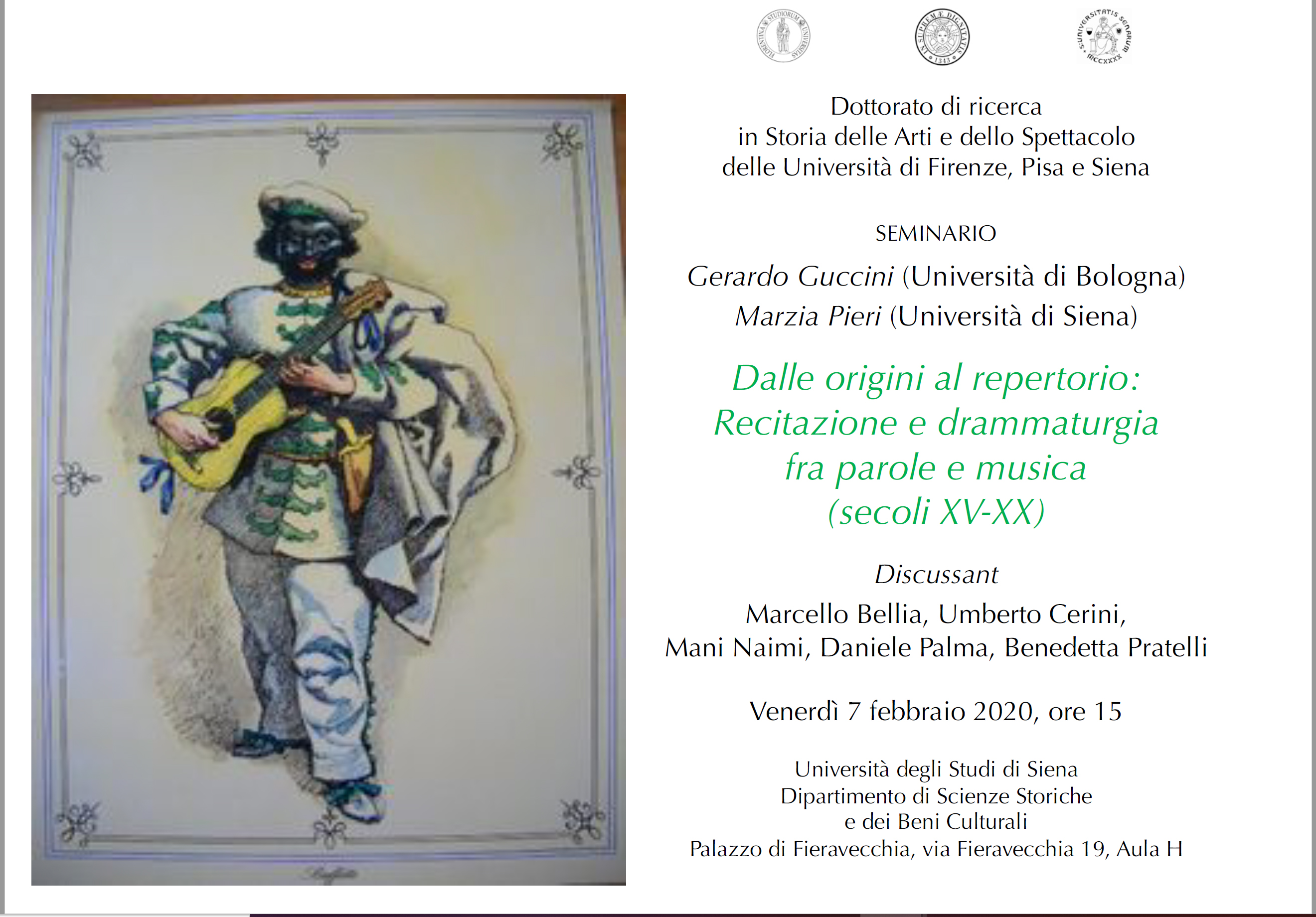 Dalle origini al repertorio: Recitazione e drammaturgia fra parole e musica (secoli XV-XX)