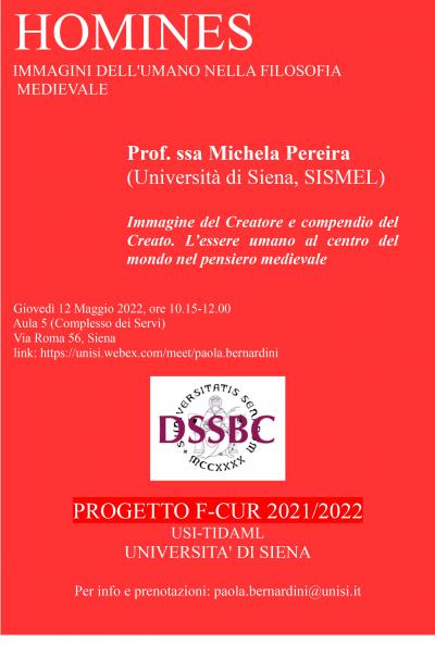 In questa occasione avremo il piacere di avere di nuovo tra noi Michela Pereira, già professoressa ordinaria di Storia della filosofia medievale presso la nostra Università. La prof.ssa Pereira presenterà una lezione dal titolo: Immagine del Creatore e compendio del Creato. L’essere umano al centro del mondo nel pensiero medievale.