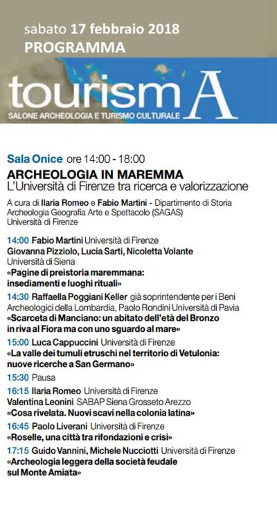 Nell'ambito di Tourisma che si svolge a Palazzo dei Congressi a  Firenze Sabato 17 febbraio ore 14, Sala Onice, Il Dipartimento di Scienze Storiche e dei Beni culturali, con il team di Preistoria  partecipa, all'incontro sul tema