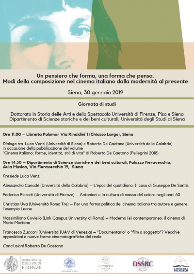 Dialogo tra Luca Venzi (Università di Siena) e Roberto De Gaetano (Università della Calabria) in occasione della pubblicazione del volume "Cinema italiano: forme, identità, stili di vita", di R. De Gaetano (Pellegrini 2018)