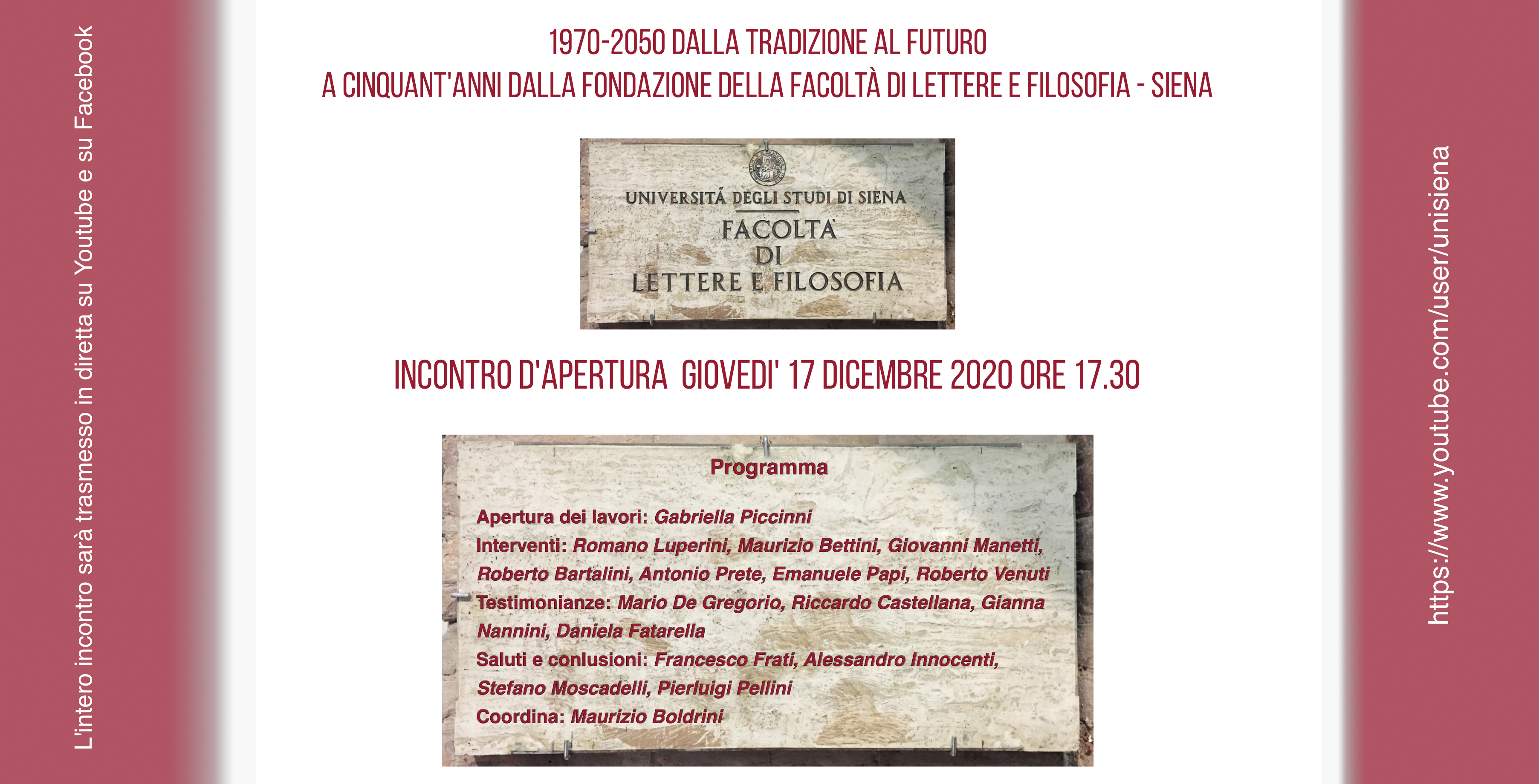 1970-2020 DALLA TRADIZIONE AL FUTURO. A CINQUANT’ANNI DALLA FONDAZIONE DELLA FACOLTA’ DI LETTERE E FILOSFIA – SIENA