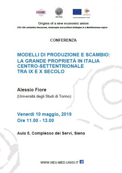 Conferenza di Alessandro Fiore (Università degli Studi di Torino) su "Modelli di produzione e scambio: la grande proprietà in Italia centro-settentrionale tra IX e X secolo"