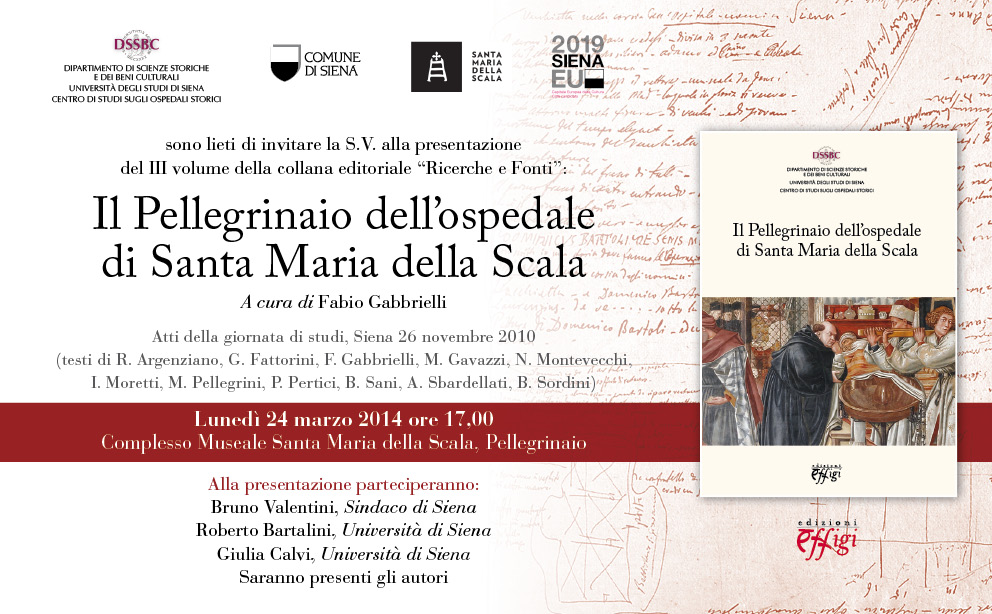 Si terrà lunedì 24 marzo 2014, alle ore 17,00, nella sala del pellegrinaio presso il Complesso Museale Santa Maria della Scala