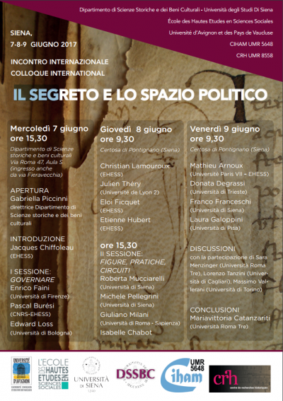 - Enrico Faini (Università di Firenze), Secretisque in consiliis astutus. Il segreto e lo spazio politico nella prima storiografia cittadina