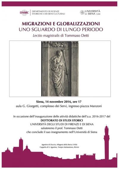Il Dipartimento di Scienze Storiche e dei Beni Culturali dell'Università di Siena saluterà Tommaso Detti in occasione della lectio magistralis con la quale aprirà le attività del dottorato in Studi Storici (Università di Firenze e Siena) per l'a.a 2016-2017.