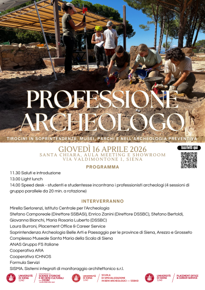 - 14.00 Speed desk - studenti e studentesse incontrano i professionisti archeologi (4 sessioni di gruppo parallele da 20 min. a rotazione)