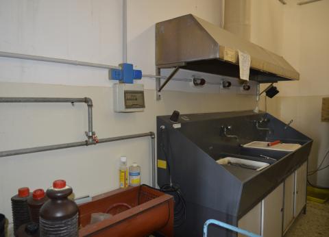 Ha una camera oscura per lo sviluppo e la per la stampa in bianco e nero di negativi in archivio di proprietà del Dipartimento.